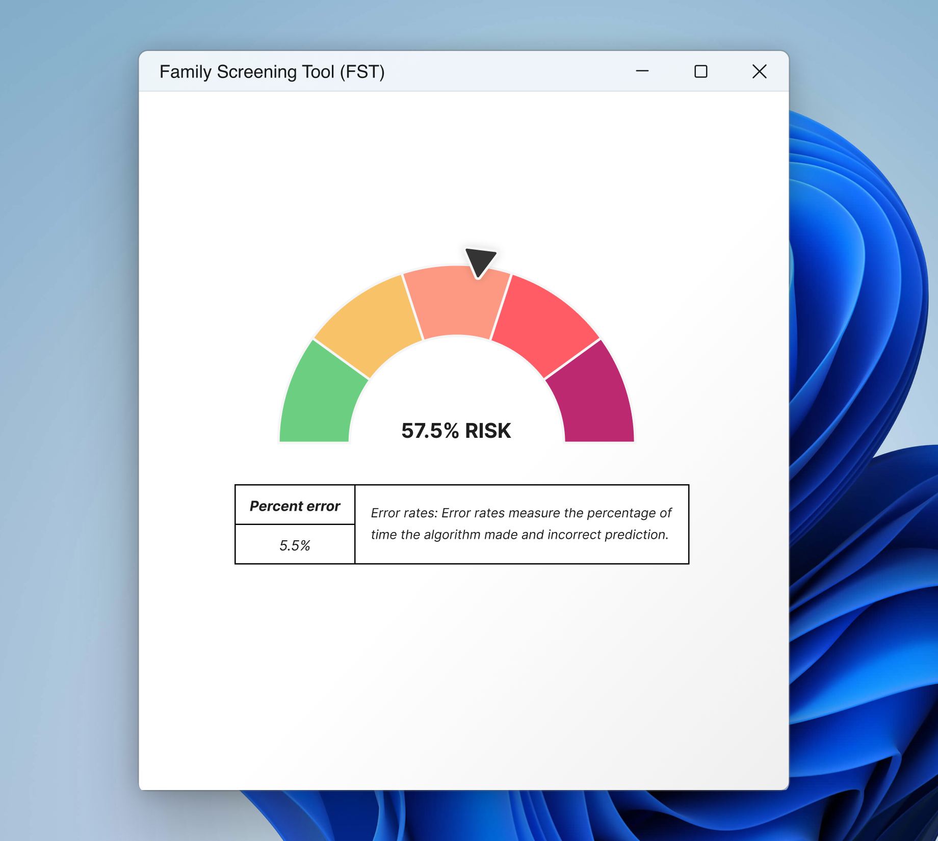 The results showed no statistically significant differences in risk classifications across widget types. However, challenges in recruiting participants with social work backgrounds prevent drawing definitive conclusions about real-world applicability. Despite these limitations, the satisfaction survey revealed an intriguing pattern: participants assigned icon arrays reported higher trust in the tool’s prediction accuracy compared to those who used gauge scales.